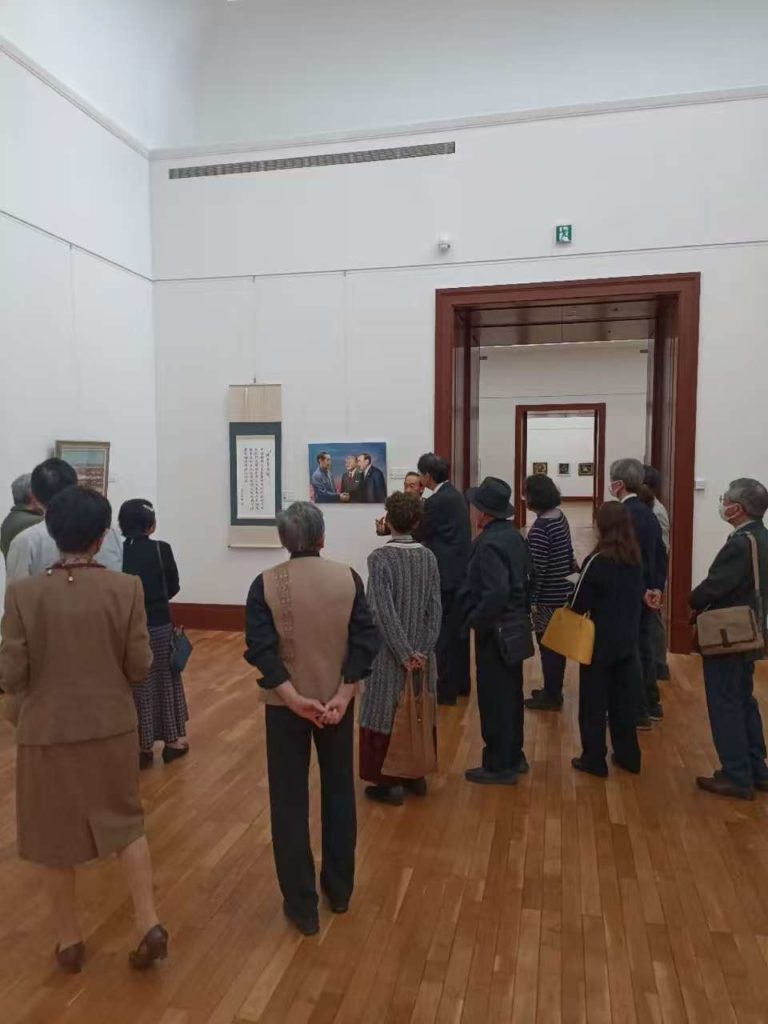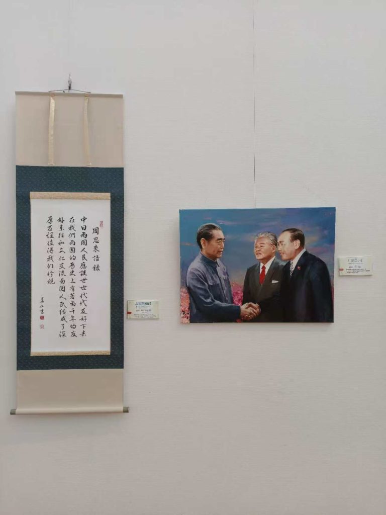 第1展示室には、中国の著名画家鄧華の油彩画《周恩来が田中角栄、大平正芳と会見》と、日本の著名書家角谷華仙が心を込めて揮毫した《周恩来語録》が展示され、多くの来場者の注目を集めた。角谷博士は「今の情勢だからこそ、日中両国の先輩政治家たちをより一層懐かしく思います。彼らは日中国交正常化に大きく貢献しました。周恩来先生の言葉はまさにその通りです」と語った。