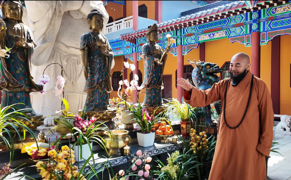 東華禅寺に足を踏み入れると、清らかで奥ゆかしい梵音と淡く雅やかな蘭の香りが交じり合い、人々は一瞬にして静かで安らかな雰囲気に浸ることができる。寺院内には、鉢植えの蘭が秩序よく並べられ、清らかな供物となっている。蘭を仏に供える伝統は東華禅寺で古くからあり、方丈の万行法師が訪問団に紹介したところによると、蘭の清らかで気高い姿は、まさに禅宗の「明心見性」という教えの趣旨に合致しているという。