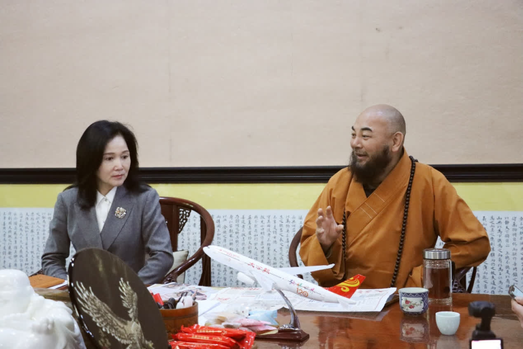 交流の中で、大公文匯グループ一行は寺院の主要な建築物を見学し、禅寺の歴史的ルーツや蘭を仏に供える文化の精髄について深く理解した。同時に、彼らは翁源が蘭産業を頼りに農村の発展を推進している成果にも注目した。
