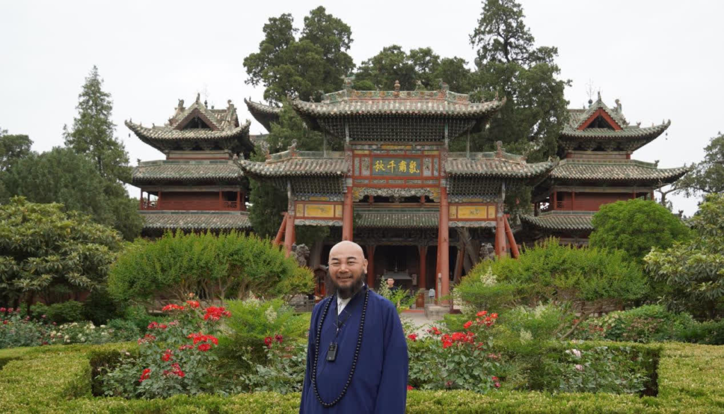 写真説明:万行法師一行は解州の関帝廟を訪れした。(李英菁撮影)