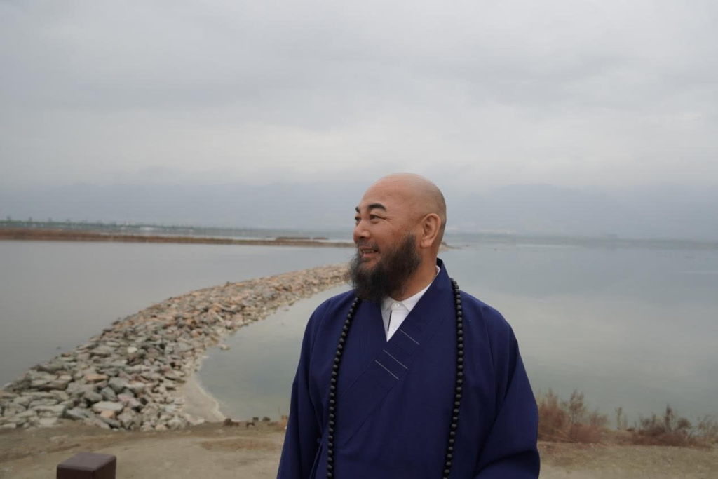 写真説明:万行法師一行が運城の塩湖に到着した。(東華禅寺提供)